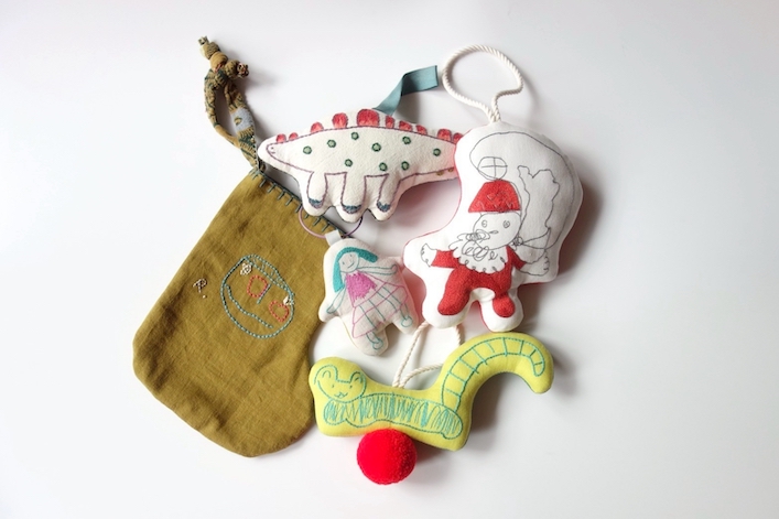 子どものらくがきを刺繍にしてオーナメントを作ります。