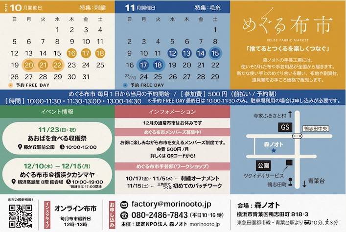 めぐる布市@象の鼻テラスが大盛況で幕を閉じたのも束の間、3ヶ月ぶりに鴨志田の工房に布市が帰ってきます。