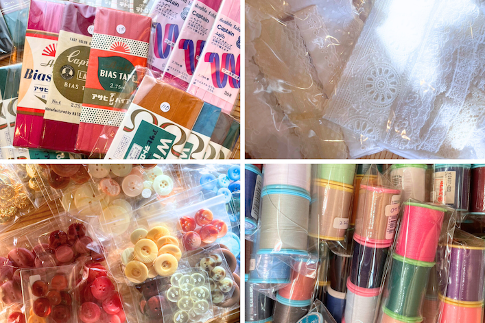 そしてレースやバイアステープ、糸やボタンなど、各副資材のセットも初登場。