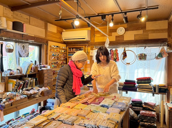 お店に並ぶのは、様々な布地を中心に、糸や針、リボンや羊毛、毛糸…..といった手芸用品、まだまだ現役で活躍できるミシンやアイロン、定規、ハサミといった道具類も。