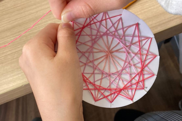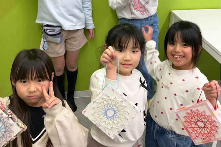 学童保育でお正月飾りとして糸かけ曼荼羅を制作しました。子どもたちは多彩な糸から3色を選び、組み合わせで雰囲気が大きく変わる面白さを体感。保護者や外国人スタッフにも好評で、海外の家族への贈り物にもなりました。譲渡糸は企業からの寄付廃材を組み合わせた企画として環境教育プログラムへ発展予定。日常工作にも継続活用しています。