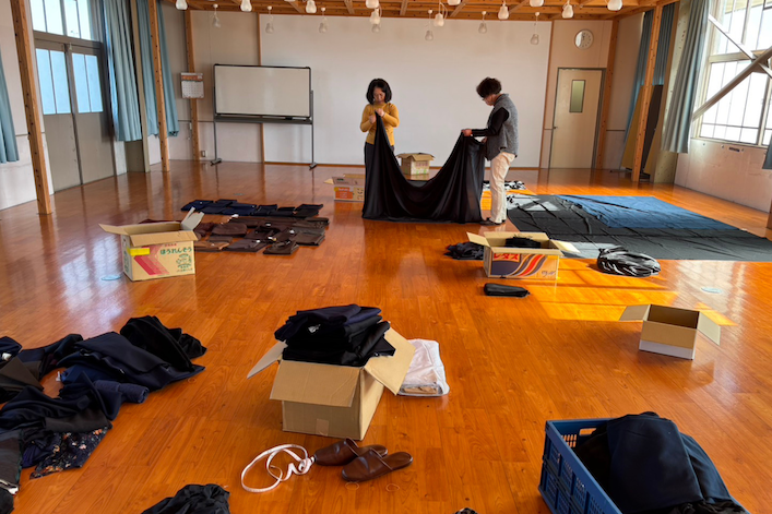 開封直後は仕分けの手間に不安もありましたが、布を広げるうちに舞台や人形のイメージが次々と湧き、創作意欲に変わりました。黒布は人形劇の蹴込みや暗幕に、他の布は人形制作に活用予定です。応援メンバーも加わりアイデアが広がっています。白布で影絵にも挑戦したいと考え、夏のフェスで他団体とも活用を検討しています。