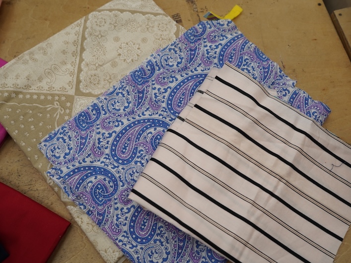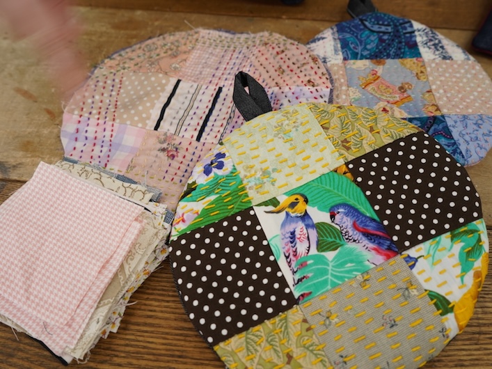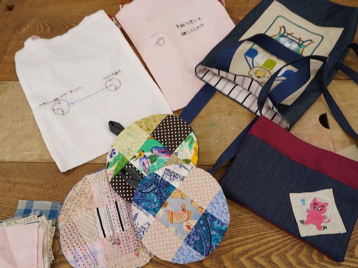 パッチワークにしたり、バッグの裏地にしたりと、生地はさまざまな形で活用しているため、小さなシミがあったとしても、しみのないところを切って使っていただいています。また、糸の種類が増えることで、布地とステッチの色を合わせたり細かい部分までこだわった作品づくりをすることができるようになったと言います。「購入するとお値段のする資材も、どなたかが使用されなくてめぐる布市さんを通じてHIKARIにめぐってきて、お受け取りすることができて感謝しています」