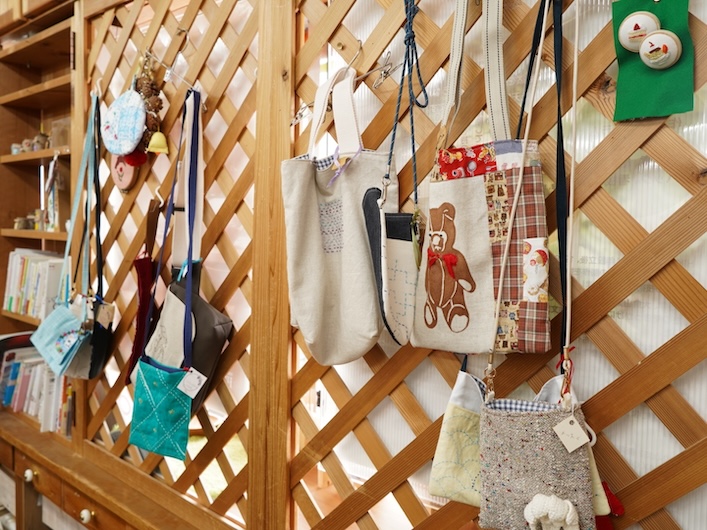 味わい深いネコの刺繍のバッグや色合わせに惹かれるパッチワークや刺し子の作品など、眺めているだけで、心がほかほかとしてくるのを感じます。
