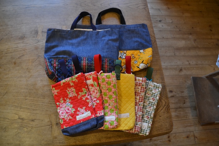 昨年12月からは「おとな手しごと」という活動も始め、その中でも布市の資材を活用しています。初回は、メンバーの有志がレッスンバッグや上履き入れ、体操着入れといった入学グッズを製作。できあがったものは社会福祉協議会に寄付し、必要な人の手に渡ることになっています。