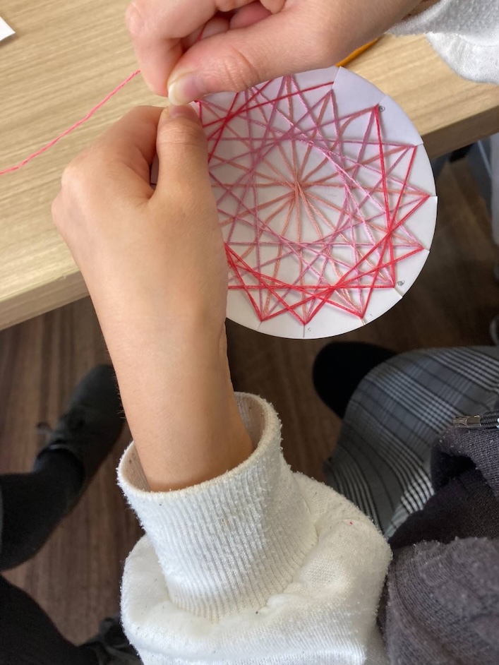 12月14日に活動を見学させていただきました。この日のワークショップは「ヒンメリを作ろう」。ヒンメリは北欧の伝統的な装飾品で、豊作、幸運、天からの恵み、家の繁栄などを願うお守りです。藁やストローを使い、八面体を作っていきます。