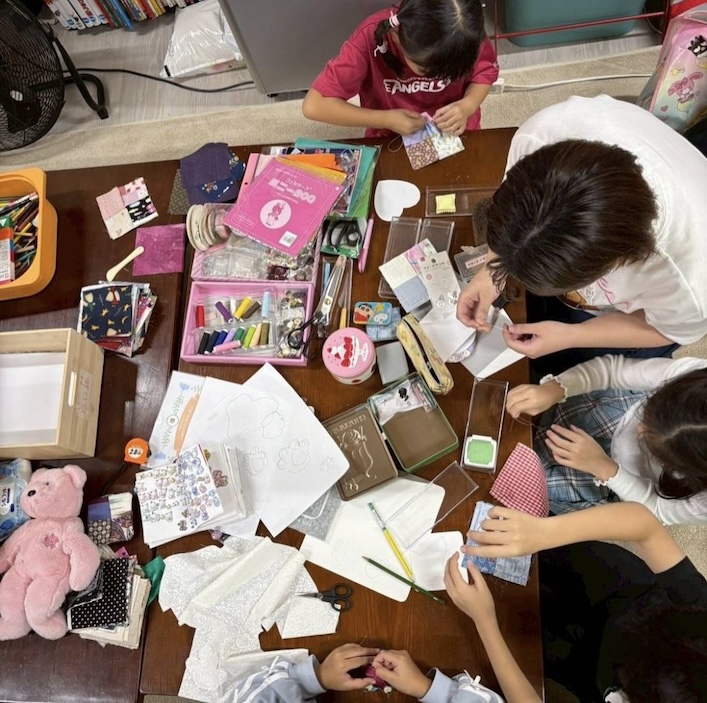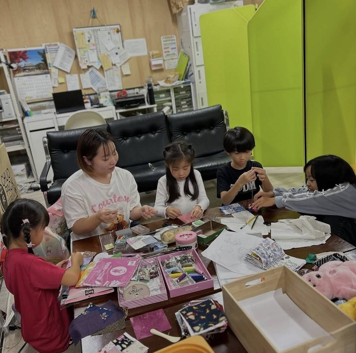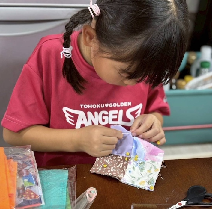 初めて布を縫うという低学年の子も、黙々と針を動かしていたそうです。コースターだけでなく、子どもたちは思い思いのものづくりを楽しみました。学童クラブの方には、普段はできない手芸の時間を持つことができ、とても喜ばれたそうです。