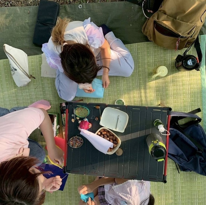 「ちょっと残っている糸というのはどの家庭にもけっこうあって、めぐる布市に寄付するほどではないような少量の糸を理科クラブに来るついでにママたちが持ってきてくれるんだよね」という通り、糸かけ曼荼羅を中心としてリユースのいい流れが生まれています。