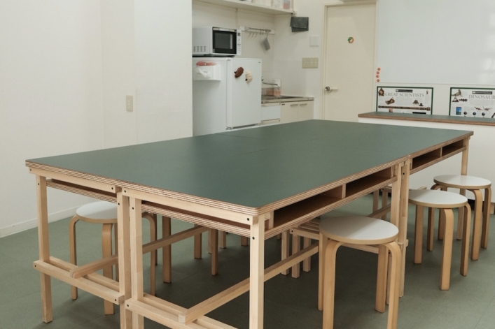 今回、理科クラブが「出口を広げるプロジェクト」に申し込むことになったきっかけは、建築内装材メーカー・南海プライウッド株式会社のショールームを西沢さんが見学した際に、「製造過程で生まれる素材を、ものづくりや学びの場でも活かせないか」と相談したことでした。