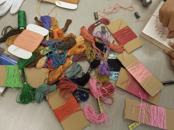 そして、せっかくなら土台の板だけでなく、糸かけ曼荼羅で使う糸もリユースのものが使えないかと思った時に、知人である三坂さんが代表を務めるNPO法人Sharing Caring Cultureがめぐる布市・出口を広げるプロジェクトに参加されていることを知り、自身も申し込んでみたんだとか。